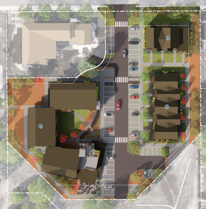The community will provide apartments in 1-2 bed configurations ( building 3 ) as well as a limited number of townhomes ( building 1) duplexes ( building 2 ). The community will also feature a community center where residents will be able to gather, meet with friends and participate in scheduled activities. The community center will also include an area to bring residents together for meals and special events.